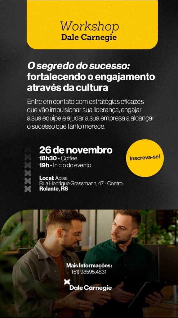 ✅ Evento de 2 horas e sai com o plano de engajamento para a empresa